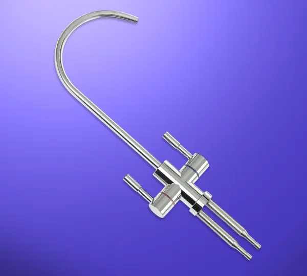 Сдвоенный кран в комплекте позволяет выбирать между чистой дистиллированной водой для бытовых нужд или обогащенной минералами — для питья и приготовления пищи