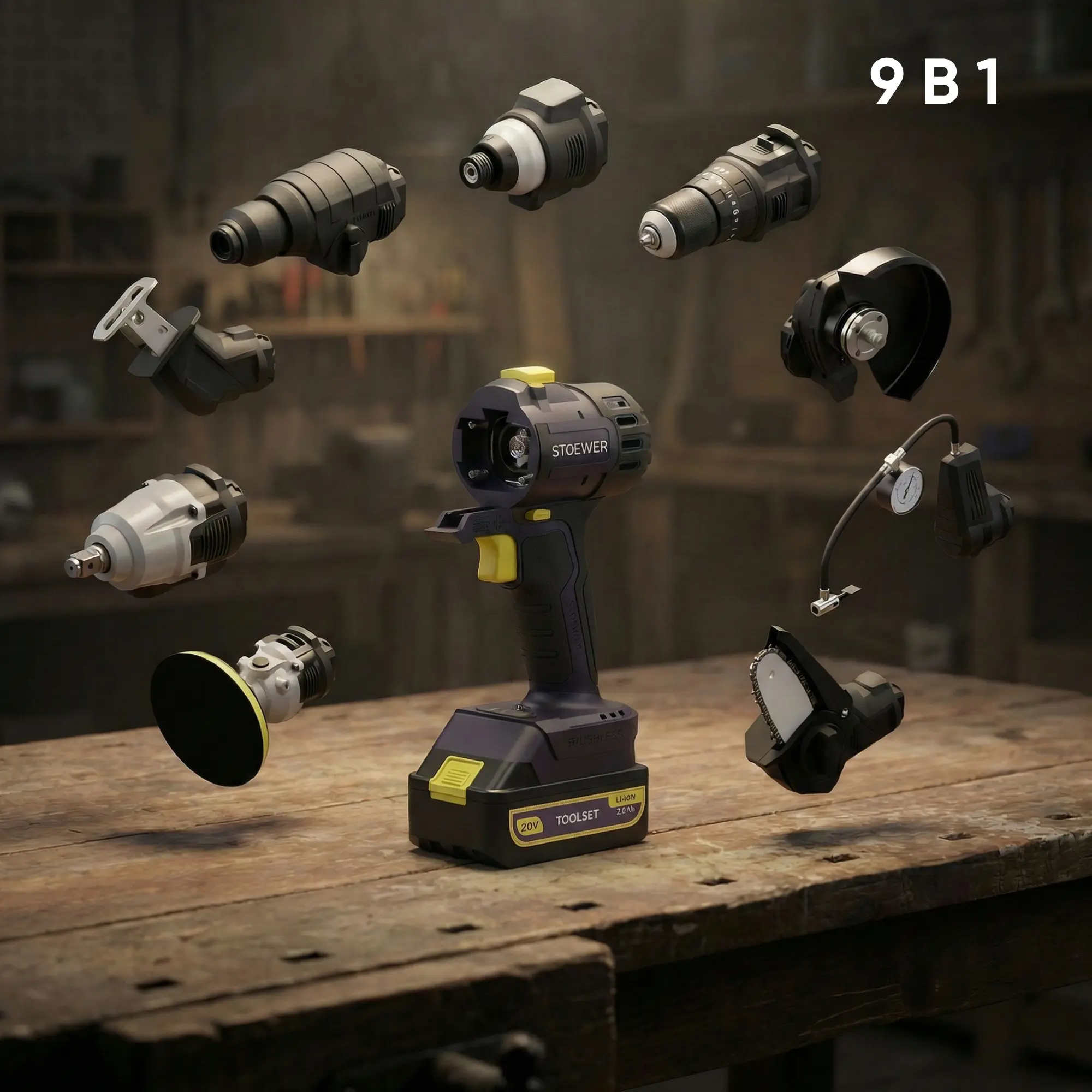 Универсальный инструмент для дома, гаража и выездных работ. Система One Stuck 9 в 1 — это решение для мастеров, которые ценят мощность, порядок и мобильность. Забудьте о беспорядке: один бесщеточный привод заменяет 9 полноценных инструментов, экономя ваше время и пространство для жизни. 9 инструментов для любых задач. В наборе собраны самые востребованные модули для стройки, ремонта и ухода за участком: перфоратор — для уверенной работы по бетону; шуруповерт — для сборки мебели и монтажа; гайковерт — незаменим в гараже для обслуживания авто; импакт — для силового закручивания крупного крепежа; сабельная пила — для демонтажа и резки труб/дерева; цепная садовая пила — для быстрого ухода за деревьями на даче; компрессор — для подкачки колес и мячей; плоскошлифовальная машина — для финишной отделки поверхностей; болгарка (УШМ) — для резки и шлифовки металла.