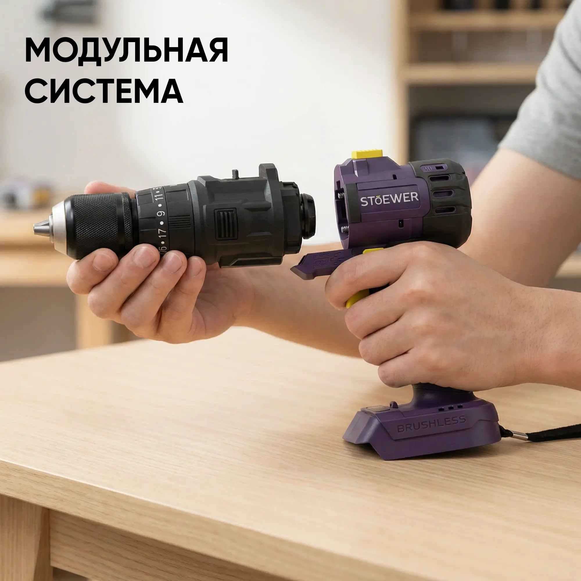 9 инструментов на единой базе. Бытовые, силовые, столярные и садовые модули - один набор под все задачи у вас под рукой