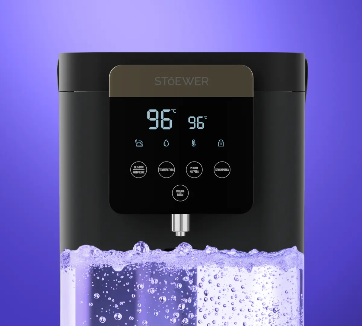 Режим кипячения доводит воду до 100°С. При кипячении происходит дехлорирование, что улучшает качество воды. Умное сенсорное управление с запоминанием порции позволяет быстро повторять предыдущие настройки.